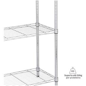 Esta estante e extremamente resistente, com uma capacidade de peso de 50 kg por prateleira, permitindo acomodar objetos pesados sem comprometer a sua estrutura. Ela vem desmontada, mas pode ser facilmente montada com as hastes, suportes meia cana e pes que estao inclusos na embalagem. Alem disso, a sua construcao em aco garante durabilidade e resistencia, permitindo que esta peca dure por muitos anos.