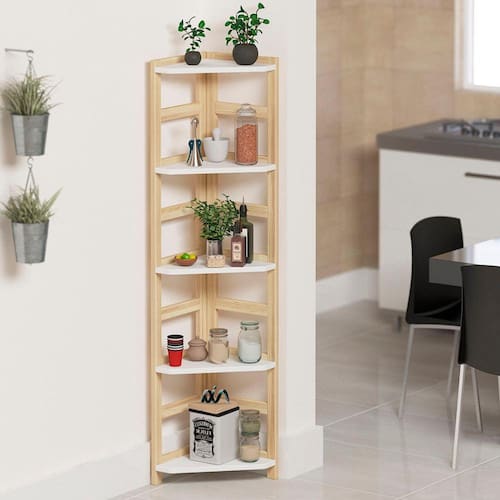 Essa estante em madeira maciça possui um design moderno com quatro prateleiras, perfeita para cantos, proporcionando versatilidade em qualquer espaço. Seu visual contemporâneo se adapta facilmente a diferentes ambientes, oferecendo um toque funcional e estiloso à decoração.