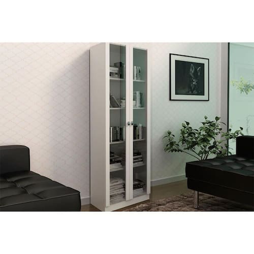 Armário de Escritório ME4115 c/ 2 Portas de Vidro Branco - Tecno Mobili