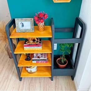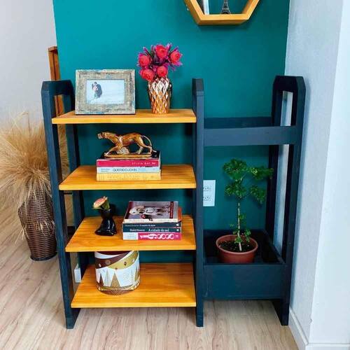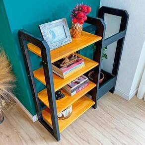 Estante de Madeira Pinus Linea Organizer Carvalho e Preto -