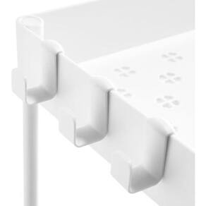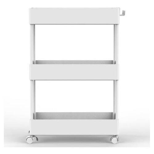 Caracteristicas Principais: Medidas do produto: 59,5cm altura x 22cm largura x 40cm profundidade Peso bruto/liquido: 2kg / 1,6kg Niveis: 3 compartimentos Material: Plastico e aco Cor: Branco Garantia: 3 meses Mobilidade: Rodas acopladas Origem: Importado EAN: 7807999957734