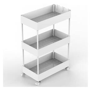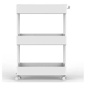 Caracteristicas Principais: Medidas do produto: 59,5cm altura x 22cm largura x 40cm profundidade Peso bruto/liquido: 2kg / 1,6kg Niveis: 3 compartimentos Material: Plastico e aco Cor: Branco Garantia: 3 meses Mobilidade: Rodas acopladas Origem: Importado EAN: 7807999957734