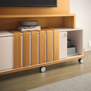 Diferenciais: Design moderno; Detalhe ripado; Rodízios cromados 50mm; Tampo e prateleira de 25mm.