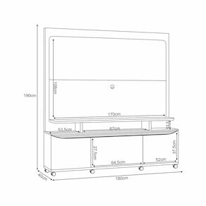 Diferenciais: Design moderno; Frente com detalhes canelados; Cantos arredondados; Pés em rodízios.