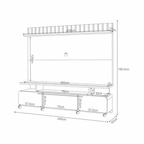Diferenciais: Design moderno; Detalhe ripado; Pistão a gás; Rodízios cromados 50mm; Tampo e prateleira de 25mm.
