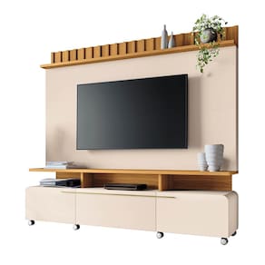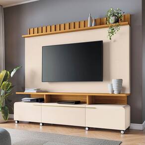 A Estante de TV 70 Pol 200 cm Ripado Jane é a escolha ideal para compor sua sala de estar, trazendo beleza e exclusividade. Ela foi produzida em MDP e MDF de 25mm e 15mm, materiais de alta qualidade e ecologicamente corretos. Além de um design moderno e funcional a estante conta com; um painel para TV que suporta até 50 polegadas, a estante apresenta tampo e a prateleira superior com espessura de 25mm garantindo maior resistência e durabilidade ao produto, o detalhe ripado na frente é um charme à parte. Possui portas laterais basculantes com dobradiças metálicas e pistão a gás, que abrem e fecham suavemente proporcionando uma flexibilidade silenciosa. Conta também com gaveta central com corrediças telescópicas, que facilitam a abertura e o fechamento e puxadores metálicos em tom dourado conferindo um toque de sofisticação ao móvel. Seus rodízios cromados de 50mm facilitam tanto a movimentação quanto a limpeza. Esta estante foi pensada para o seu lar. Aproveite!
