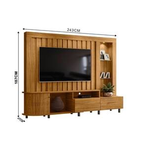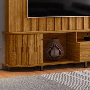 Estante De Tv 70 Pol 243cm Ripado Sala De Estar Nivora Cumaru M20 - D'rossi A Estante de TV Nivora na Cumaru é a opção perfeita para quem deseja unir design contemporâneo, organização inteligente e acabamento sofisticado na Sala de Estar. Com largura de 243cm, o móvel suporta TVs de até 70 polegadas, transformando o ambiente em um espaço elegante e funcional. Produzida com chapas em MDP de 15mm e 25mm, oferece excelente durabilidade e resistência ao longo do tempo. O destaque fica por conta da porta deslizante ível em MDF, com design curvo exclusivo, que proporciona um visual diferenciado e otimiza o uso do espaço. A iluminação LED integrada valoriza objetos decorativos e cria uma atmosfera aconchegante. As prateleiras de vidro de 5mm adicionam leveza e requinte, enquanto o nicho central é ideal para aparelhos eletrônicos. Para completar, o móvel conta com duas gavetas com corrediças telescópicas, que garantem organização prática e eficiente. Os pés em poliestireno garantem estabilidade e ainda contribuem para a praticidade na hora da limpeza. O puxador em tom cromado, por sua vez, acrescenta um toque de sofisticação ao design. Dimensões do Produto: Altura: 187 cm Largura: 243 cm Profundidade: 47 cm Peso: 98 kg Características do Produto: Material da Estrutura: MDP e MDF Espessuras das Chapas: 15mm/25mm Peso Suportado: 43 Kg Distribuídos Acabamento: Pintura UV Escala de Brilho: Brilho/Fosco Suporta TV de até: 70 Polegadas Possui Prateleiras: Sim Quantidade de Prateleiras: 2 Prateleiras Material das Prateleiras: Vidro 5mm Possui Portas: Sim Quantidade de Portas: 1 Porta Material da Porta: MDF Tipo Porta: Deslizante Possui Nichos: Sim Quantidade de Nichos: 1 Nicho Possui Gavetas: Sim Quantidade de Gavetas: 2 Gavetas Material das Corrediças: Telescópicas Possui Puxador: Sim Quantidade de Puxador: 1 Puxador Material do Puxador: Poliestireno cromado Possui Pés: Sim Material dos Pés: Poliestireno Possui Luminária de LED: Sim Possui Espelho: Não possui Possui Rodízios: Não possui Diferenciais: Design moderno; Detalhes curvos no tampo e na base; Porta deslizante ível, Painel com detalhe ripado. Sistema de montagem: Cavilhas/Parafusos/Minifix Manual de Montagem: Sim Complexidade da Montagem: Alta Montagem: Recomendamos que seja feita por um Garantia: 90 dias contra de fabricação Instruções de Limpeza: Utilizar um pano limpo e levemente úmido Quantidade de Volumes 3 Caixas Medida das Embalagens Caixa 1: 140x49,5x13,7cm; Caixa 2: 183,5x37x10cm; Caixa 3: 240,7x29,5x8,2cm : É feita somente até o térreo ou portaria. Confira sempre as medidas das embalagens para assegurar que o produto passe por portas e escadas do .