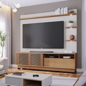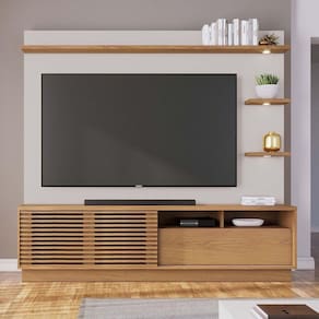 Com estrutura em MDP de alta qualidade e acabamento em pintura UV, a Estante de TV Lidia é a escolha ideal para quem valoriza espaço, organização e estilo. Seu design moderno com linhas minimalistas acomoda TVs de até 70 e se destaca pelo visual elegante. A parte superior conta com prateleiras iluminadas por spots de LED bivolt, que trazem aconchego e sofisticação ao ambiente. O móvel possui uma porta de correr com detalhe ripado e brises, que reforça seu apelo contemporâneo. Além disso, oferece uma gaveta com corrediças telescópicas, nichos internos e oito pés em PVC, garantindo estabilidade e funcionalidade. Uma peça versátil e cheia de personalidade, perfeita para transformar sua sala com praticidade e bom gosto. O grande diferencial da Estante de TV Lidia está na sua porta deslizante ripada com brises, um detalhe que imprime sofisticação e reforça o estilo contemporâneo da peça. Combinando beleza e funcionalidade, esta estante transforma sua sala de estar em um ambiente elegante e convidativo, perfeito para momentos de lazer e entretenimento. Garanta já a sua! Dimensões do Produto: Altura: 180 cm Largura: 200 cm Profundidade: 40,9 cm Altura dos Pés: 5 cm Peso: 88,6 kg Características do Produto: Material da Estrutura: MDP 15mm e 25mm Acabamento: UV Revestimento: Pintura Escala de Brilho: Fosco Revestimento da Borda: Fitas de borda em papel Possui LED: Spot Led Bi-volt Voltagem: Bivolt Possui Gavetas: Sim Quantidade de Gavetas: 1 Gaveta Tipo de Corrediças: Corrediças telescópicas Possui Prateleiras: Sim Quantidade de Prateleiras: 3 Prateleiras Possui Portas: Sim Quantidade de Portas: 1 Porta Tipo Porta: Deslizante Possui Vidro: Não Possui Puxador: Não Possui Rodízios: Não Possui Pés: Sim Quantidade de Pés: 8 Pés Material dos Pés: Plástico PVC Possui Nichos: Sim Quantidade de Nichos: 2 Nichos Recomendado para TV: Para TVs até 70 Diferenciais: Design moderno; Detalhe Porta brize com ripado artesanal; prateleiras iluminadas com três Spot Led Manual de Montagem: Sim Complexidade da Montagem: Baixo Montagem: Recomendamos que seja feita por um Garantia: 90 dias contra de fabricação Instruções de Limpeza: Utilizar um pano limpo e levemente úmido Quantidade de Volumes 3 Caixas Medida das Embalagens Caixa 1: 11,2 cm x 33,4 cm x 102,5 cm; Caixa 2: 8,4 cm x 41,2 cm x 206,9 cm e Caixa 3: 9,3 cm x 45,6 cm x 206,5 cm : É feita somente até o térreo ou portaria. Não levamos em andares superiores. Confira sempre as medidas das embalagens.