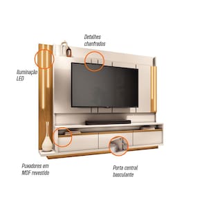 A Estante de TV 75 Pol 240 cm Fany Off White/Cinamomo possui uma estrutura robusta e estável, que se adapta perfeitamente à decoração da sala de estar. Ela se destaca pela sua grande capacidade de armazenamento, tornando-se uma solução prática e funcional. Oferece espaço amplo para acomodar uma TV de até 75 polegadas, proporcionando uma experiência de entretenimento ainda mais completa, com conforto e praticidade, ideal para momentos de lazer e diversão em família. Além disso, conta com uma porta central basculante e duas gavetas, oferecendo praticidade para organizar e guardar seus objetos pessoais. Os puxadores em MDF revestidos, aliados aos detalhes chanfrados e à iluminação em LED, inspirados na arquitetura de alto padrão, trazem um toque sofisticado. Fabricado em MDF/MDP de alta qualidade, garantindo durabilidade e resistência ao longo do tempo. Aproveite a oportunidade para renovar sua sala de estar e criar um ambiente perfeito para desfrutar de momentos de lazer com sua família!