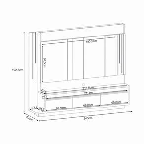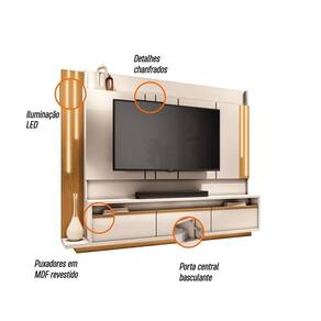 Estante De Tv 75 Pol 240cm Fany Off White/cinamomo H01 - DRossi A Estante de TV 75 Pol 240 cm Fany Off White/Cinamomo possui uma estrutura robusta e estável, que se adapta perfeitamente à decoração da sala de estar. Ela se destaca pela sua grande capacidade de armazenamento, tornando-se uma solução prática e funcional. Oferece espaço amplo para acomodar uma TV de até 75 polegadas, proporcionando uma experiência de entretenimento ainda mais completa, com conforto e praticidade, ideal para momentos de lazer e diversão em família. Além disso, conta com uma porta central basculante e duas gavetas, oferecendo praticidade para organizar e guardar seus objetos pessoais. Os puxadores em MDF revestidos, aliados aos detalhes chanfrados e à iluminação em LED, inspirados na arquitetura de alto padrão, trazem um toque sofisticado. Fabricado em MDF/MDP de alta qualidade, garantindo durabilidade e resistência ao longo do tempo. Aproveite a oportunidade para renovar sua sala de estar e criar um ambiente perfeito para desfrutar de momentos de lazer com sua família! Dimensões dos Produtos: Altura: 192,5 cm Largura: 240 cm Profundidade: 40 cm Peso: 120 kg Especificações do Produto: Material da Estrutura: MDP e MDF de 40mm, 25mm e 15mm Acabamento: Pintura UV Suporta TV de até: 75 Polegadas Peso Suportado Distribuído: 50 Kg Distribuído Possui Gavetas: Sim Quantidade de Gavetas: 02 Gavetas com corrediças telescópicas Possui Portas: Sim Quantidade de Portas: 01 Porta central basculante com pistão a gás Tipo de Dobradiças: Metálicas Possui LED: Sim, iluminação inspirada na arquitetura de alto padrão Possui Passa-Fios: Sim Tipo de Puxador: Puxadores em MDF revestidos Diferenciais: Design moderno; Iluminação em LED; Detalhes Chanfrados. Manual de Montagem: Sim Complexidade da Montagem: Média Montagem: Recomendamos que seja feita por um profissional Garantia: 90 dias contra defeito de fabricação Instruções de Limpeza: Utilizar um pano limpo e levemente úmido Você irá Receber: 1 Estante. Entregue em: 4 Volumes