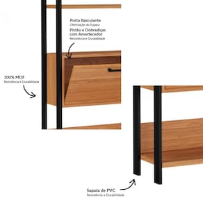 Características: Estrutura 100% MDF Acabamento em Pintura UV Prateleiras Leves e Resistentes 01 Porta Basculante com Pistão e Dobradiças de Amortecimento Puxadores Plásticos Estilo Industrial Sapatas PVC
