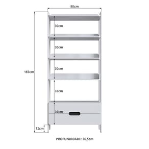 Leveza, funcionalidade e um design que se adapta a qualquer ambiente. A Estante Elvis é o equilíbrio perfeito entre praticidade e estética, oferecendo quatro prateleiras amplas para expor livros, plantas e objetos decorativos, além de duas gavetas inferiores para manter tudo organizado. Seus cantos arredondados trazem um toque suave e moderno, enquanto sua estrutura robusta, produzida 100% em MDF de 1,5cm com acabamento BP, garante resistência e durabilidade. Fácil de limpar e de montar, ela se encaixa perfeitamente em salas, escritórios, quartos e até mesmo cozinhas, tornando qualquer espaço mais elegante e bem aproveitado. Produto Montado: Sim Acabamento da Gaveta: Melamínico Acabamento da Prateleira: Melamínico Acabamento dos Pés: Melamínico Altura dos Pés: 12 cm Altura Máxima dos Pés: 12.0000 Ambiente Principal: Sala de Estar codigo_ean: 7900288116239 Complexidade da Montagem: Média: pode ser montado por mais de uma pessoa e/ou necessite de maior conhecimento para montagem Cor: Branco Cor do Produto: Branco Cor Flex: Não Cor Interna: Branco Escala de Brilho: Fosco Escala de Brilho da Gaveta: Fosco Escala de Brilho da Prateleira: Fosco Gaveta com Chave: Não Itens Inclusos: 1 Estante, Kit de Ferragens e Manual de Montagem Linha ou Coleção: Móveis para sala de estar Manual de Montagem e Instalação: https://product-hub-prd.madeiramadeira.com.br/981441/documents/f28b04c8-9ed3-4d0f-a7a9-85ebe3f8644c2775961579517435164584554.pdf Marca: FD Material da Gaveta: MDF Material da Prateleira: MDF Material dos Pés: MDF Material Principal: MDF Montagem Flex: Não Necessita Montagem: Sim Origem do Produto: Nacional Peso: 40,3 kg Peso Máximo por Gaveta: 5 kg Peso Máximo por Prateleira: 6 kg Possui Acabamento na Parte de Trás: Não Possui Espelho: Não Possui iluminação: Não Possui Pés: 04 Possui Portas: Não Possui Prateleiras: Sim Possui Rodízio: Não Possui Vidro: Não Quantidade de Gavetas: 02 Gavetas Recomendações de Uso, Manutenção e Limpeza: Limpar somente com um pano levemente umedecido. Indicado para ambientes internos Sapatas Niveladoras: Não Sistema de Montagem: Parafusos, cavilhas e minifix Suporta Até (kg): 34 kg Tipo de Corrediça da Gaveta: Metálica Telescópica Tipo de Puxador da Gaveta: Embutido