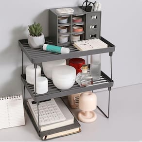 Estante Empilhavel Dobravel Sapateira Multifuncional Porta Objetos Ajustavel Cozinha Pia Banheiro Armario Cinza