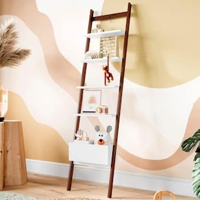 Estante Escada Decorativa Branca Sambalelê é um item que foi desenvolvido com o intuito de decorar o quartinho Sambalelê, pois nela é possível instalar luzinhas e armazenar livrinhos dando assim maior charme ao ambiente.