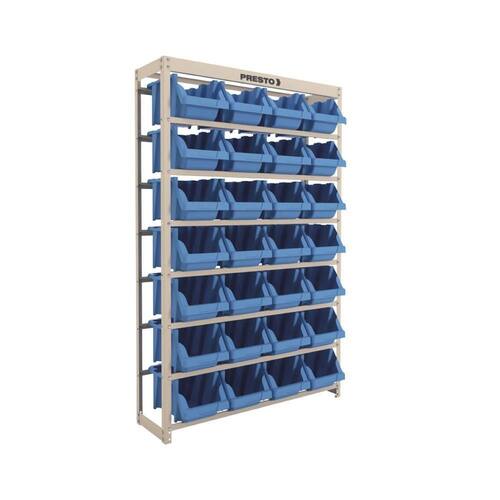 Kit Estante Gaveteiro Organizador 28/7 Azul em aço para encaixar gavetas plásticas, possibilitando diversos tipos de armazenagem. O Kit Estante Gaveteiro é ideal para organizar parafusos e outras peças pequenas, pois facilita o acesso rápido a itens necessários para realizar o trabalho de maneira mais ágil e organizada. Estrutura em aço e 28 Gavetas Empilháveis n 7 inclusas.