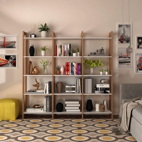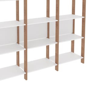 Estante Haia. Estrutura em MDP e acabamento em pintura UV e parte em BP. Imagem meramente ilustrativa. A decoração do ambiente não acompanha o produto, produto entregue desmontado, novo, acompanha nota e manual de montagem e ferragem. Acabamento da Prateleira: Pintura UV Ambiente Principal: Sala de Estar Complexidade da Montagem: Média: pode ser montado por mais de uma pessoa e/ou necessite de maior conhecimento para montagem Cor: Amêndoa/Branco Cor do Produto: Amêndoa/Branco Cor Flex: Amêndoa/Branco Cor Interna: Amêndoa/Branco Escala de Brilho: Semi-Brilho Escala de Brilho da Prateleira: Semi-Brilho Itens Inclusos: Kit Ferragem e Manual de Montagem. Linha ou Coleção: AZ Manual de Montagem e Instalação: https://cdn2.madeiramadeira.com.br/atributo/tecno-mobili/1275078-az-2024-yescasa.pdf Material da Prateleira: MDP Material Principal: MDP Necessita Montagem: Sim Origem do Produto: Nacional Peso: 53,95 kg Peso Máximo por Prateleira: 5 kg Possui Espelho: Não Possui Possui iluminação: Não Possui Pés: Não Possui Portas: Não Possui Prateleiras: 15 Possui Vidro: Não Recomendações de Uso, Manutenção e Limpeza: Para uma limpeza mais efetiva, utilizar apenas pano macio umedecido e sabão neutro. Não utilizar produtos abrasivos. Sistema de Montagem: Parafuso. Suporta Até (kg): 75 kg