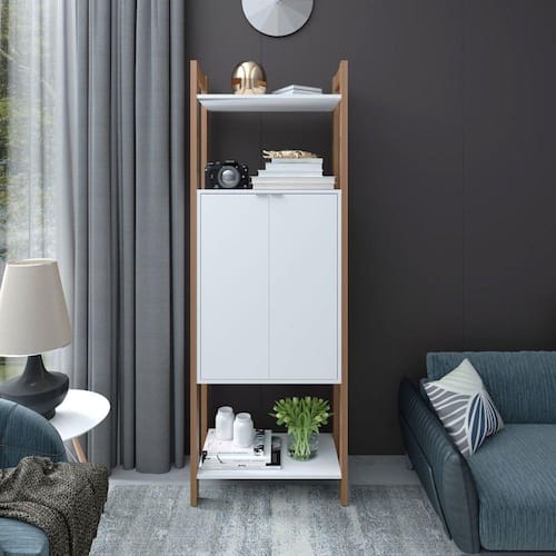Estante Haia. Estrutura em MDP e acabamento em pintura UV e parte em BP. Imagem meramente ilustrativa. A decoração do ambiente não acompanha o produto, produto entregue desmontado, novo, acompanha nota e manual de montagem e ferragem. Acabamento da Porta: Pintura UV Acabamento da Prateleira: Pintura UV Ambiente Principal: Sala de Estar Complexidade da Montagem: Média: pode ser montado por mais de uma pessoa e/ou necessite de maior conhecimento para montagem Cor: Amêndoa/Branco Cor do Produto: Amêndoa/Branco Cor Flex: Branco Cor Interna: Amêndoa/Branco Escala de Brilho: Semi-Brilho Escala de Brilho da Porta: Semi-Fosco Escala de Brilho da Prateleira: Semi-Brilho Itens Inclusos: Kit Ferragem e Manual de Montagem. Linha ou Coleção: AZ Manual de Montagem e Instalação: https://cdn2.madeiramadeira.com.br/atributo/tecno-mobili/1274005-az-2018.pdf Material da Porta: MDP Material da Prateleira: MDP Material do Puxador da Porta: MDP Material Principal: MDP Necessita Montagem: Sim Origem do Produto: Nacional Peso: 29,6 kg Peso Máximo por Prateleira: 5 kg Possui Espelho: Não Possui Possui iluminação: Não Possui Pés: Não Possui Portas: 02 Possui Prateleiras: 03 Possui Vidro: Não Recomendações de Uso, Manutenção e Limpeza: Para uma limpeza mais efetiva, utilizar apenas pano macio umedecido e sabão neutro. Não utilizar produtos abrasivos. Sistema de Montagem: Parafuso Suporta Até (kg): 30 kg Tipo de Dobradiça/Corrediça da Porta: Metálica Tipo de Puxador da Porta: Externo