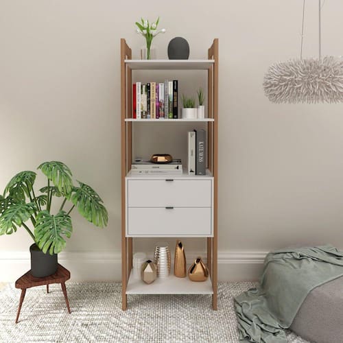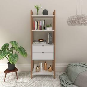 Estante Haia. Estrutura em MDP e acabamento em pintura UV e parte em BP. Imagem meramente ilustrativa. A decoração do ambiente não acompanha o produto, produto entregue desmontado, novo, acompanha nota e manual de montagem e ferragem. Acabamento da Gaveta: Pintura UV Acabamento da Prateleira: Pintura UV Ambiente Principal: Sala de Estar Complexidade da Montagem: Média: pode ser montado por mais de uma pessoa e/ou necessite de maior conhecimento para montagem Cor: Amêndoa/Branco Cor do Produto: Amêndoa/Branco Cor Flex: Amêndoa/Branco Cor Interna: Amêndoa/Branco Escala de Brilho: Semi-Brilho Escala de Brilho da Gaveta: Semi-Brilho Escala de Brilho da Prateleira: Semi-Brilho Gaveta com Chave: Não Itens Inclusos: Kit Ferragem e Manual de Montagem. Linha ou Coleção: AZ Manual de Montagem e Instalação: https://cdn2.madeiramadeira.com.br/atributo/tecno-mobili/1274018-az-2020.pdf Material da Gaveta: MDP Material da Prateleira: MDP Material do Puxador da Gaveta: Alumínio Material Principal: MDP Necessita Montagem: Sim Origem do Produto: Nacional Peso: 27,5 kg Peso Máximo por Gaveta: 3 kg Peso Máximo por Prateleira: 5 kg Possui Espelho: Não Possui Possui iluminação: Não Possui Pés: Não Possui Portas: Não Possui Prateleiras: 04 Possui Vidro: Não Recomendações de Uso, Manutenção e Limpeza: Para uma limpeza mais efetiva, utilizar apenas pano macio umedecido e sabão neutro. Não utilizar produtos abrasivos. Sistema de Montagem: Parafuso Suporta Até (kg): 30 kg Tipo de Corrediça da Gaveta: Metálica Simples Tipo de Puxador da Gaveta: Externo