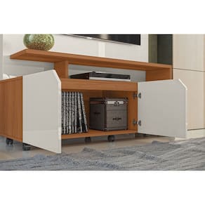 Estante Home Berlim para TV até 60 Polegadas 2 Portas Prateleira e Rodízio Off White/Tauari - Lukaliam