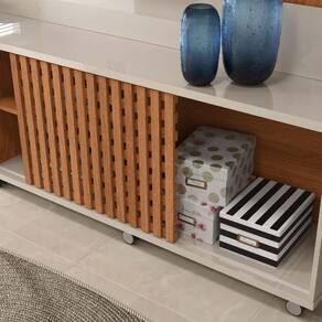 Estante Home Brise para TV até 70 Polegadas 1 Porta Correr 2 Gavetas e Rodízio Off White/Jequitibá - Lukaliam