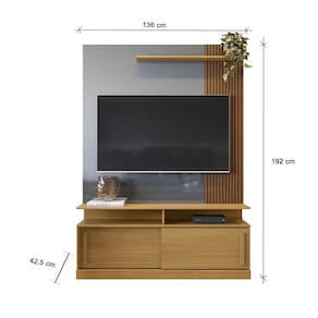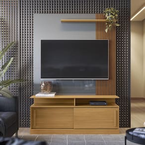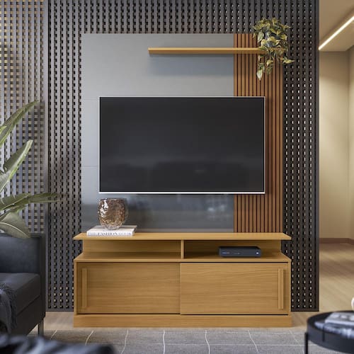 Estante Home Chicago para TV até 60 Polegadas 2 Portas Correr Prateleira e Rodízio Tauari/ Cinza Perolizado - Lukaliam