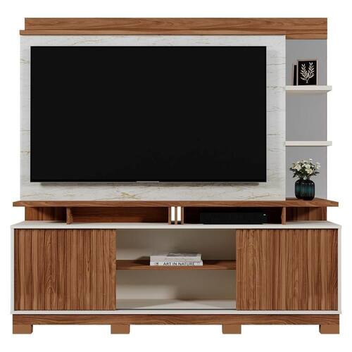 Estante Home Denver 180cm Cinamomo Mel/off White/carrara Para Até 60 - Mobler Cinamomo Mel/off White/carrara
