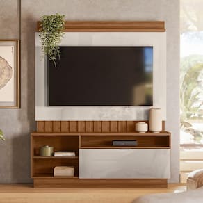 Lindo Home Diamantina, Possui Porta Basculante Com Articulador, Detalhe Do Painel Ripado, Prateleira Superior De 25Mm, Puxador De Alumínio, Suporta Tv De Até 60" Prateleira Superior De 25Mm, Painel Ripado, Puxador De Alumínio, Porta Basculante Com Articulador, Suporta Tv De Até 60" Cor: 785 Amendoa/Perola Metalizado Acabamento: PINTURA U.V. Material Principal: MDP Largura:(m) 1,5 Altura:(m) 1,825 Profundidade:(m) 0,335 Peso Suportado: 45KG