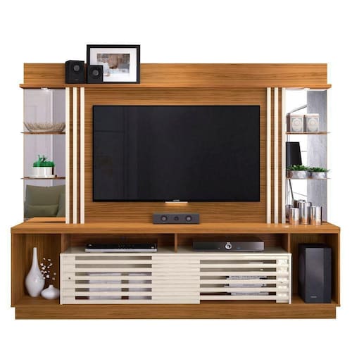 A Estante Home Gisele, com certeza será uma das melhres compras que você irá fazer! Aqui vou apresentar alguns detalhes dessa perfeição. Começando pelas portas, super modernas, ripadas que se sobrepõe, podendo formar um novo design para o ambiente. Tem espelhos laterais com iluminação em LED, prateleiras em vidro, e suporta uma TV de até 55 polegadas. O material de fabricação é MDP. Esse modelo é finalizado com os pés em mini sapatas, super discretos. Aproveite, compre já.