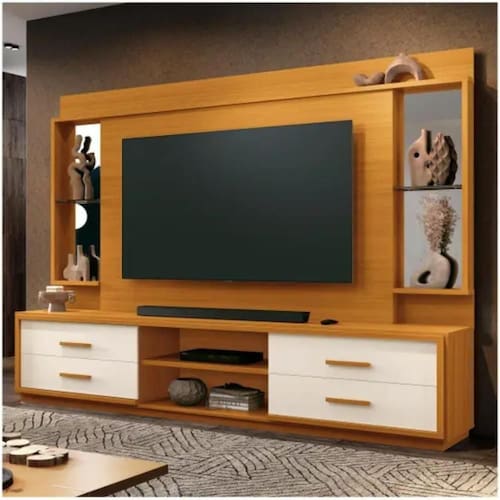 Esta estante foi projetada para acomodar uma TV de até 75 polegadas.