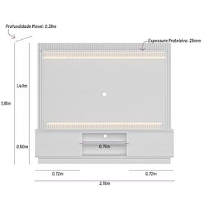 Dimensões: Altura: 1,91 m Largura: 2,15 m Profundidade: 0,38 m Peso Bruto: 94,85 kg