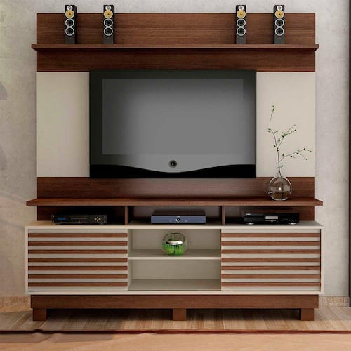 Sua sala de estar ficará ainda mais linda e com uma decoração moderna! Conte com o espaçoso Home Theater! Confeccionado com materiais de qualidade, ele conta com nichos para você colocar aparelhos eletrônicos, livros e DVDs. As prateleiras são ideais para colocar objetos de decoração como vasos e fotografias. Ele comporta TV de até 60 polegadas. Bacana, né?
