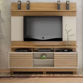 A Estante Home Texas é um móvel de 180cm de largura projetado para criar uma área de entretenimento em casa. Possui 2 portas de correr com detalhes ripados, para armazenamento de acessórios. É adequado para acomodar TV´s de até 60 polegadas.