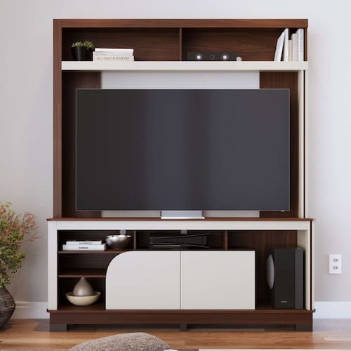 Estante Home para TV até 65 Polegadas 2 Portas Belaya Colibri, ideal para quem busca manter a sala sempre organizada sem abrir mão do estilo. Com portas para guardar itens essenciais, duas prateleiras espaçosas e um compartimento com divisórias inteligentes, ela oferece funcionalidade e aproveitamento eficiente do espaço.