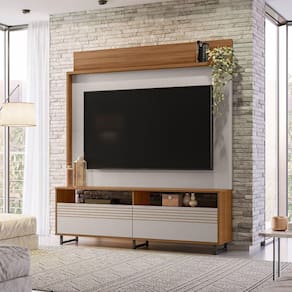 Comportando televisores de até 65", o Home NT 1300 da Notável Móveis traz muito espaço para curtir aquele filme em familia. Conta com prateleira de 25mm, ideal para comportar seus objetos decorativos com segurança. As duas portas possuem pistão a gás, proporcionando uma abertura mais suave e segura. As portas, produzidas em MDF, possuem frisos decorativos que junto aos pés de metal, levam para sua sala de estar um design moderno e contemporâneo. PRATELEIRA DE 25mm, FRISOS DECORATIVOS, PISTÃO A GÁS, PÉS EM METAL Acabamento da Porta: Pintura UV Acabamento da Prateleira: Pintura UV Acabamento dos Pés: Pintura Altura dos Pés: 6 Ambiente Principal: Sala de Estar Complexidade da Montagem: Média: pode ser montado por mais de uma pessoa e/ou necessite de maior conhecimento para montagem Cor: Freijó Trend/Off White TX Cor do Produto: Freijó Trend/Off White TX Escala de Brilho: Fosco Escala de Brilho da Porta: Fosco Escala de Brilho da Prateleira: Fosco Ideal para TVs até (Polegadas): 65 Itens Inclusos: 1 Estante Home, Kit Ferragens e Manual de Montagem Manual de Montagem e Instalação: https://cdn2.madeiramadeira.com.br/atributo/moveis-notavel/1228788-nt1300-manual-de-montagem.pdf Material da Porta: MDP Material da Prateleira: MDP Material do Puxador da Porta: MDP Material dos Pés: Alumínio Material Principal: MDP Necessita Montagem: Sim Origem do Produto: Nacional Peso: 51 Peso Máximo por Prateleira: 5 Possui Espelho: Não Possui iluminação: Não Possui Nichos: 02 Possui Pés: 03 Possui Portas: 02 Possui Prateleiras: 01 Possui Rodízio: Não Possui Vidro: Não Recomendações de Uso, Manutenção e Limpeza: Para maior durabilidade, recomenda-se que a limpeza dos móveis seja feita da seguinte forma: Nas partes externas (portas, laterais e frente de gaveta) e internas, a limpeza deverá ser feita com pano limpo e levemente umedecido em água e sabão neutro. Em seguida, deverá ser passado um pano limpo e seco. Sapatas Niveladoras: Não Sistema de Montagem: Parafuso e minifix Suporta Até (kg): 51 Tipo de Porta: Basculante Tipo de Puxador da Porta: Embutido