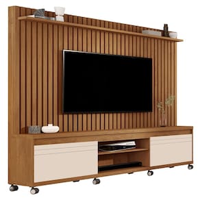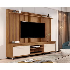 Um conjunto perfeito para sua casa. Com prateleira para sua decoração e nichos para seus equipamentos eletrônicos, vai trazer para a seu ambiente um toque de aconchego e elegância. O painel em 100% ripado real deixando-o sofisticado. O rack com duas portas espaçosas de design moderno. Pés em Rodizio dando mais segurança ao rack. Este conjunto foi pensado para você que gosta de beleza e sofisticação para seu lar.