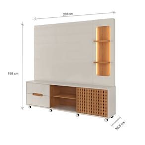 Estante Home Brise para TV até 70 Polegadas 1 Porta Correr 2 Gavetas e Rodízio Off White/Jequitibá - Lukaliam