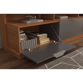 Estante Home Bilbao para TV até 70 Polegadas 3 Portas Prateleiras Vidro e Rodízio Jequitibá/Cinza Perolizado - Lukaliam
