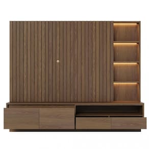 Características: Estrutura em MDP 4 Gavetas Corrediças telescópicas Ripado LED Suporta TVs até 82 Polegadas
