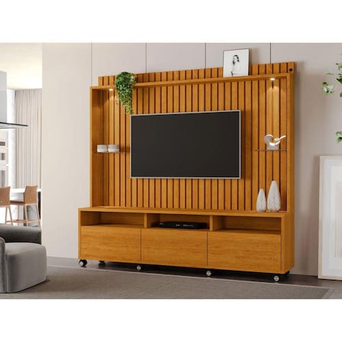 Transforme a sua sala de estar com a Estante Home Absoluto, seu design ripado confere um toque contemporâneo, enquanto a iluminação LED embutida adiciona um brilho envolvente. Com três gavetas, você pode organizar seus itens com facilidade, mantendo a ordem no espaço. As prateleiras proporcionam um local elegante para exibir objetos de decoração.A combinação de materiais premium, como madeira ripada, vidro e iluminação LED, cria um contraste sofisticado que eleva o charme da sua sala. Construída com foco na funcionalidade e estética, o home se adapta harmoniosamente a diversos estilos de decoração. A facilidade de montagem permite que você desfrute rapidamente do novo visual da sua sala. Realce seu espaço de convivência com essa estante versátil, unindo beleza, praticidade e tecnologia. Acabamento da Gaveta: Pintura UV Acabamento da Prateleira: Pintura UV Acompanha Lâmpada: 02 Ambiente Principal: Sala de Estar Complexidade da Montagem: Alta: deve ser montado por um montador especializado Cor: Marromle Cor do Produto: Marromle Cor Flex: Não Cor Interna: Marromle Escala de Brilho: Fosco Escala de Brilho da Gaveta: Fosco Escala de Brilho da Prateleira: Fosco Espessura do Vidro: 3 mm Gaveta com Chave: Não Ideal para TVs até (Polegadas): 60 Itens Inclusos: 1 Estante Home , 1 Kit ferragens, 1 Manual de Montagem Manual de Montagem e Instalação: https://product-hub-prd.madeiramadeira.com.br/860416/documents/630af598-9e9b-45dc-912f-ed8a9f959e8a1447258home1.pdf Material da Gaveta: MDF/MDP Material da Prateleira: MDF/MDP Material Principal: MDF/MDP Montagem Flex: Não Necessita Montagem: Sim Origem do Produto: Nacional Peso: 98,5 kg Peso Máximo por Gaveta: 3 kg Peso Máximo por Prateleira: 3 kg Possui Espelho: Não Possui iluminação: Sim Possui Nichos: 03 Possui Pés: Não Possui Portas: Não Possui Prateleiras: 04 Possui Vidro: Sim Recomendações de Uso, Manutenção e Limpeza: Pano levemente umedecido com agua, seguido de pano seco. Não utilizar produtos quimicos ou abrasivos. Manter o móvel em lugar livre de umidade e ao abrigo de exposição direta ao sol. Sistema de Montagem: Parafusos, Cavilhas Suporta Até (kg): 40 kg Tipo de Corrediça da Gaveta: Metálica Telescópica Tipo de Puxador da Gaveta: Embutido