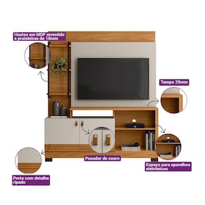 Design moderno e sofisticação são atributos da Estante Home Alagoas. Com painel para TV de até 50 polegadas, possui 4 prateleiras e 3 nichos para dispor decoração e aparelhos eletrônicos. Além de suas 2 portas de abrir com detalhes em ripado e puxadores de couro, a Estante Home Alagoas acompanha pés e ainda 2 hastes revestidas que dão um toque de requinte e modernidade ao ambiente Dimensões: Altura: 1,87 m Largura: 1,60 m Profundidade: 0,39m Peso Bruto: 57,35 kg