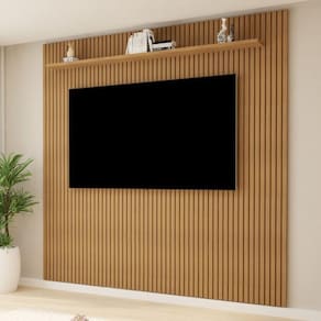 Conjunto elegante e prático composto por uma estante home suspenso frisado, projetado para TVs de até 75 polegadas, oferecendo estilo e organização para a sala de estar. Acompanha um rack com 2 portas deslizantes, modelo Manaus, proporcionando espaço de armazenamento adicional para dispositivos eletrônicos e acessórios. Essa combinação é perfeita para criar um ambiente moderno e funcional na sala de estar. Acabamento: Pintura UV Altura do Conjunto: 218 cm Ambiente: null Ambiente Principal: Sala de Estar Cor: Cinamomo/Off White Informação Complementar: 1x Estante Home Suspenso Frisado para TV até 75 Polegadas Curitiba Cinamomo Largura: 224 cm Altura: 218 cm Peso: 63 kg Profundidade: 21 cm Necessita Montagem: Sim