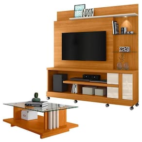 Estante Home Theater Alan com Rodízios e Mesa de Centro Frizz Cinamomo Off White - Madetec