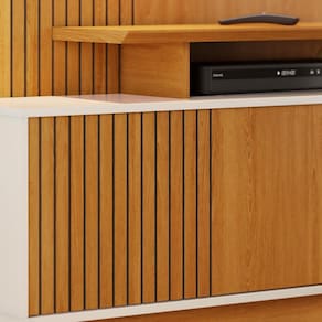 A Estante Home Theater Ares é a escolha perfeita para quem busca sofisticação e funcionalidade na sala de estar. Produzida em MDF e MDP com pintura UV, apresenta um design moderno com painel lateral frisado em baixo relevo e porta deslizante no mesmo acabamento. O puxador pontual dourado adiciona um toque elegante, enquanto o tampo e a prateleira superior com borda chanfrada proporcionam um visual refinado. Ideal para TV até 65, tornando seu espaço mais aconchegante e estiloso.
