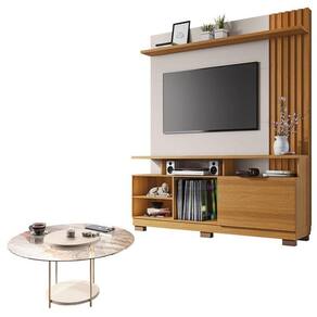 Estante Home Theater Artheo Cinamomo Off White e Mesa de Centro Sky com Tampo de Vidro Off White- HB Móveis