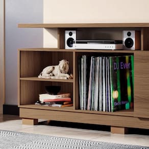 ESPECIFICAÇÕES: Estrutura em MDP e MDF com espessuras de 25mm, 15mm e 12mm Pintura UV 1 Porta basculante com pistão a gás Dobradiças metálicas Puxador em poliestireno com acabamento na cor champanhe Nichos Prateleira inferior removível Prateleira superior de 25mm Detalhe produzido com o autêntico ripado HB Móveis Ideal para TV até 55"