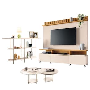 Estante Home Theater Artís Off White Cinamomo e Aparador Infinity e Kit Mesa de centro Sky Off White – HB Móveis