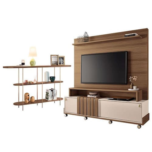 Estante Home Theater Bold Castanho Off White – HB Móveis