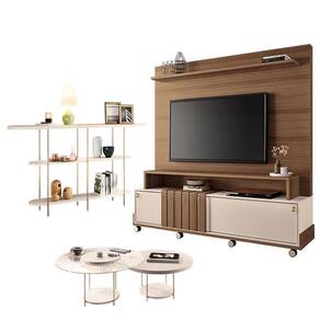 Estante Home Theater Bold Off White Castanho e Aparador Infinity Kit Mesa de Centro sky Off White – HB Móveis