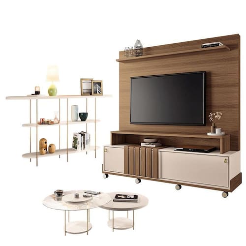 Estante Home Theater Bold Castanho Off White – HB Móveis