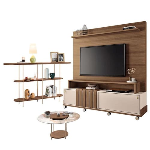 Estante Home Theater Titan Castanho Off White - HB Móveis